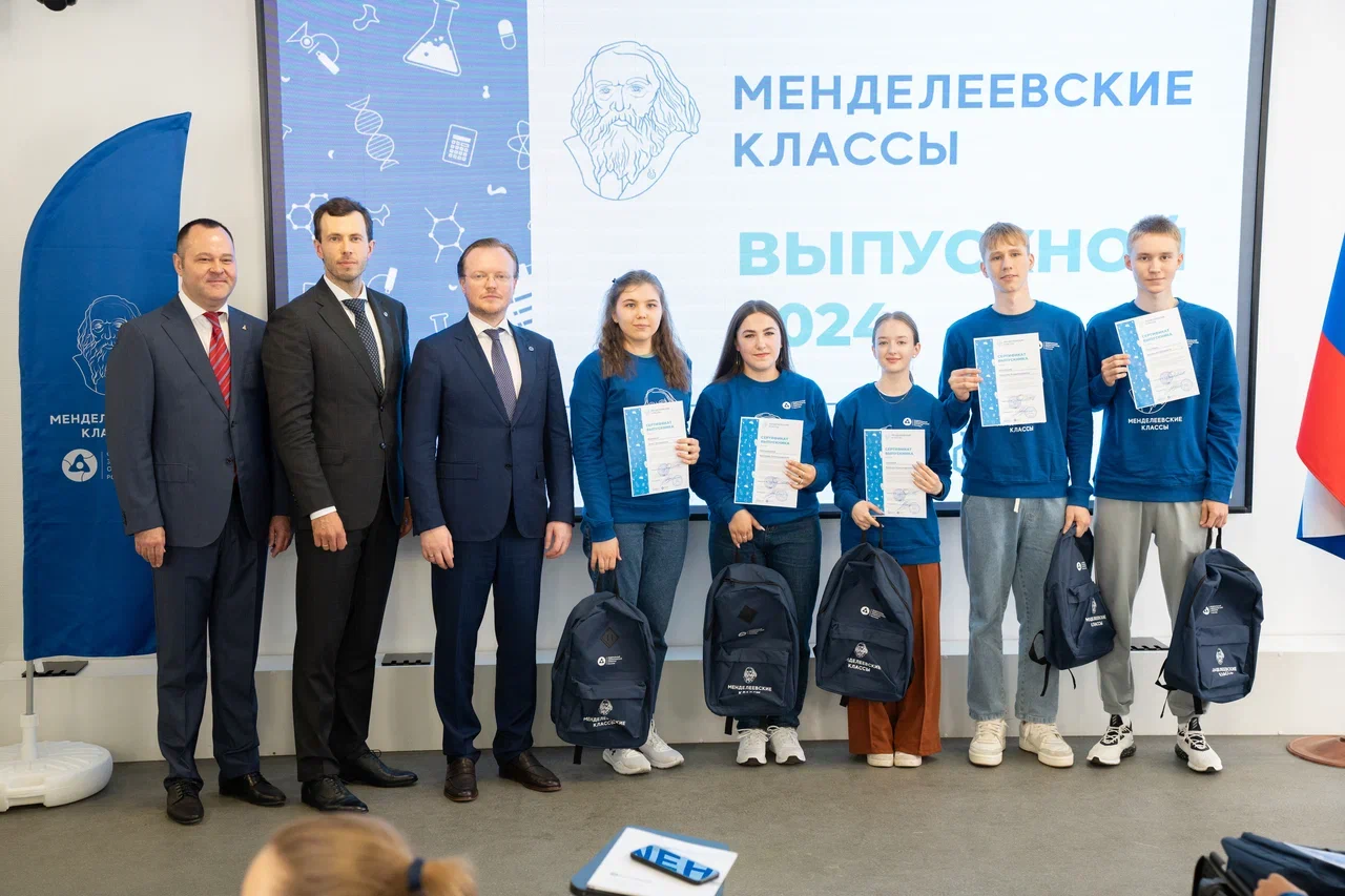 В Российском химико-технологическом университете имени Д.И. Менделеева состоялась торжественная церемония вручения сертификатов первым выпускникам образовательного проекта «Менделеевские классы». Проект, реализуемый совместно с Федеральным экологическим оператором Госкорпорации «Росатом», направлен на профориентацию школьников в области экологии и углубленную подготовку по химии и математики.