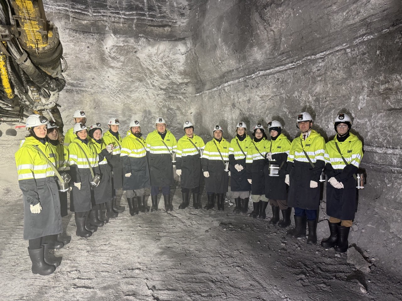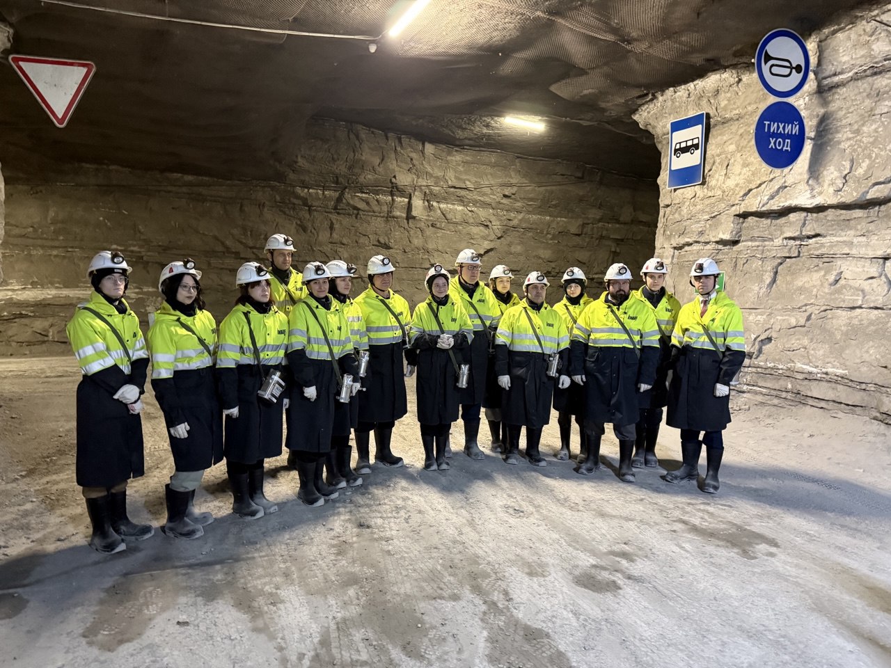 В ходе визита на производство делегация РХТУ посетила подземную шахту, спустившись на глубину 130 метров. Менделеевцы смогли убедиться, что современное горнодобывающее производство кардинально отличается от традиционных представлений о шахте. На предприятии активно используются цифровые технологии, обеспечивающие высокий уровень контроля и безопасности. Особое внимание было уделено системе мониторинга: на диспетчерском пульте в режиме реального времени отображается информация о ситуации на рабочих местах, движении транспорта и работе технологического оборудования. Такой подход позволяет оперативно реагировать на любые изменения и поддерживать стабильный режим работы. Кроме того, применяемая техника и инфраструктура направлены на создание комфортных условий труда для сотрудников, а персонал обеспечен современными индивидуальными средствами защиты.