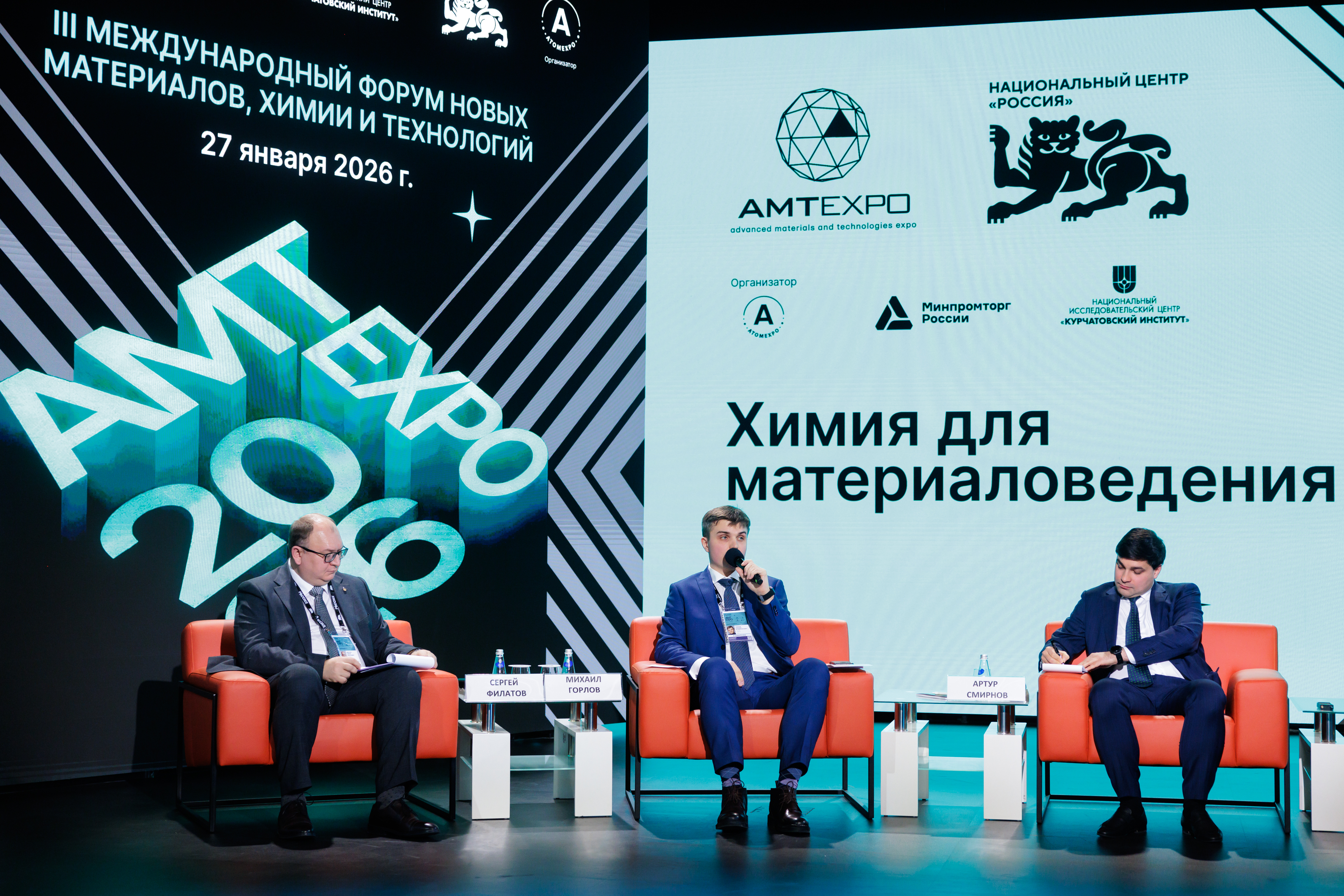 Мероприятие прошло в рамках III Форума новых материалов и химии АМТЕхро. В работе круглого стола приняли участие директор департамента химической промышленности Минпромторга России Артур Смирнов, директор направления по внедрению новых технологий «Росатом Технологическое развитие» ГК «Росатом» Михаил Горлов, председатель совета директоров «Роснанотехинвест» Денис Балушевский, руководитель Курчатовского комплекса физико-химических технологий Курчатовского института Антон Егоров, заведующий кафедрой физической химии НИТУ МИСИС Алексей Салимон, директор по прикладным разработкам «Сибур Полилаб» Василий Машуков, директор «П-Д Татнефть-Алабуга Стекловолокно» Айрат Халимов, директор по поддержке экспорта в химической отрасли ГК Российского экспортного центра Евгений Кижаев. Модераторами выступили ректор РХТУ им. Д.И. Менделеева Сергей Филатов и начальник отдела функциональных материалов и веществ Курчатовского Института Денис Онучин.