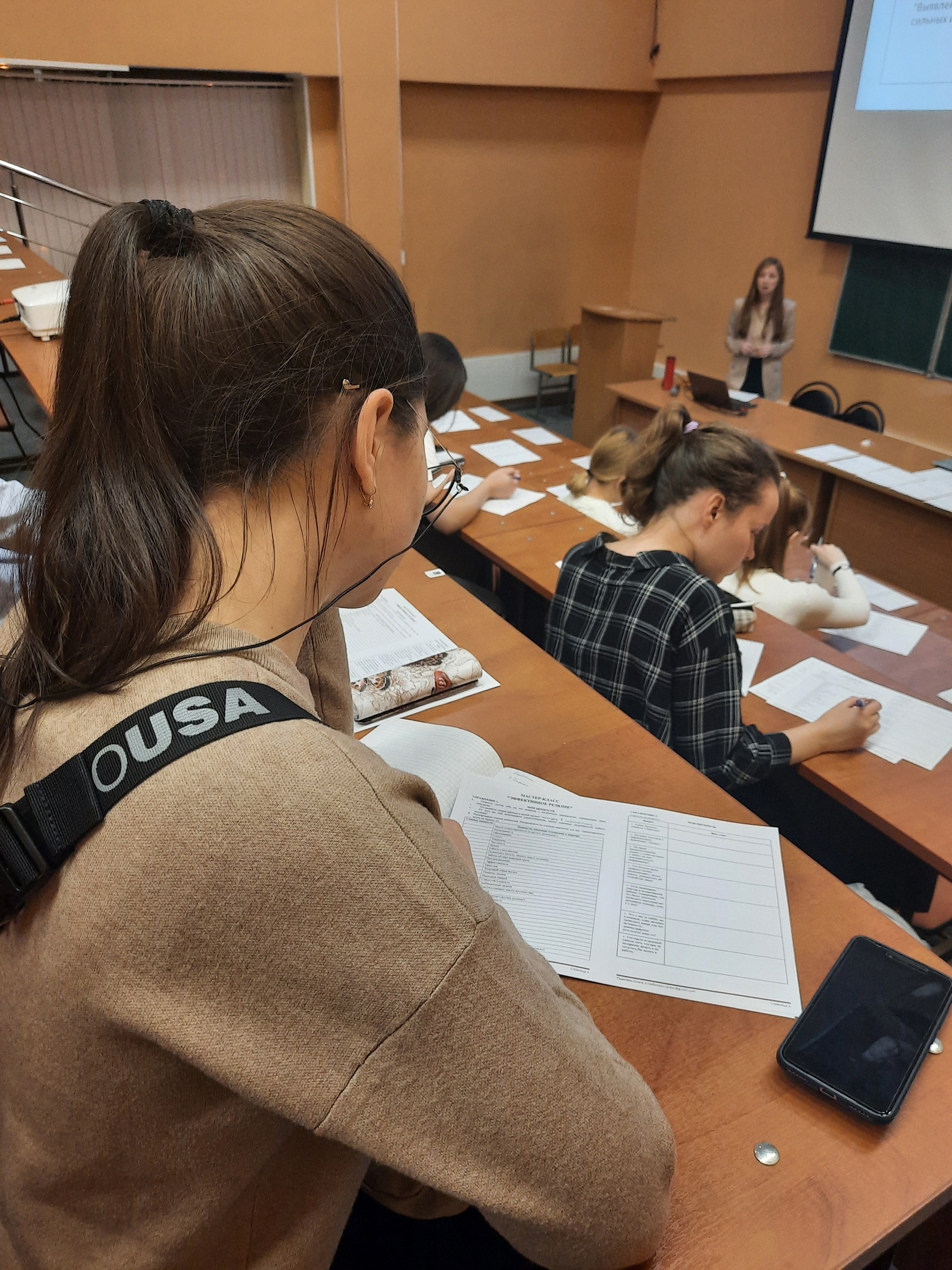 Студенты определили свои ценности и интересы, выявили сильные и слабые стороны, подробно ознакомились со структурой резюме, а также узнали хитрости успешного прохождения собеседования.